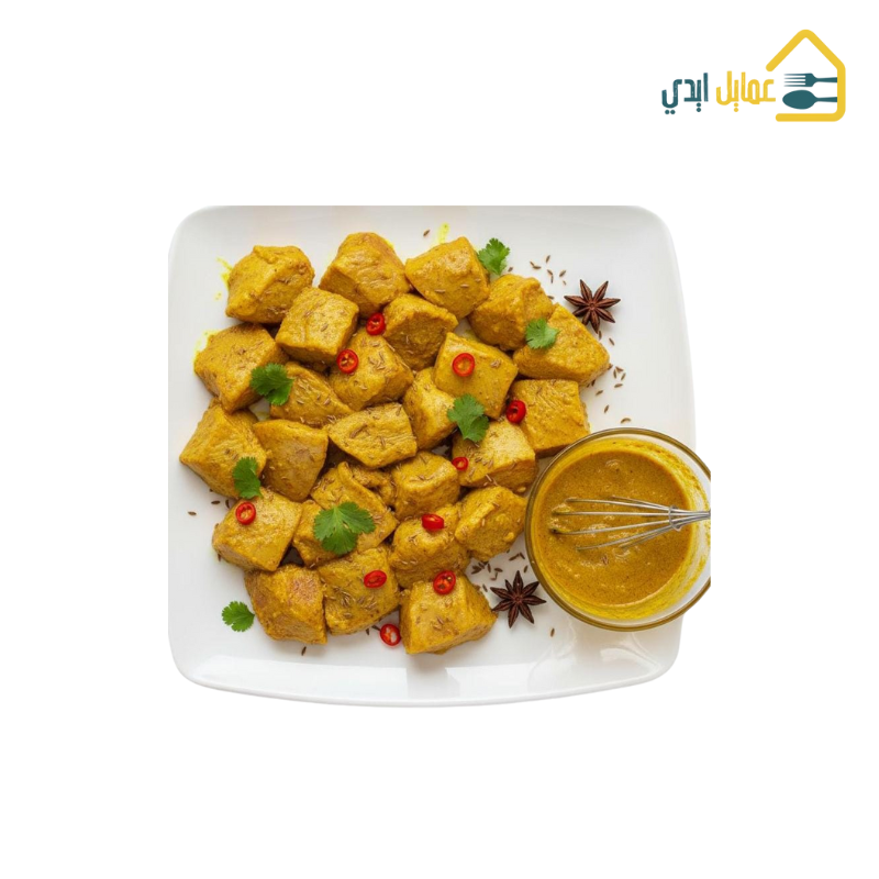 مكعبات من صدور الدجاج متبله ومع صوص الكاري اللذيذ ليعطي طعم هندي وبيتي في نفس الوقت